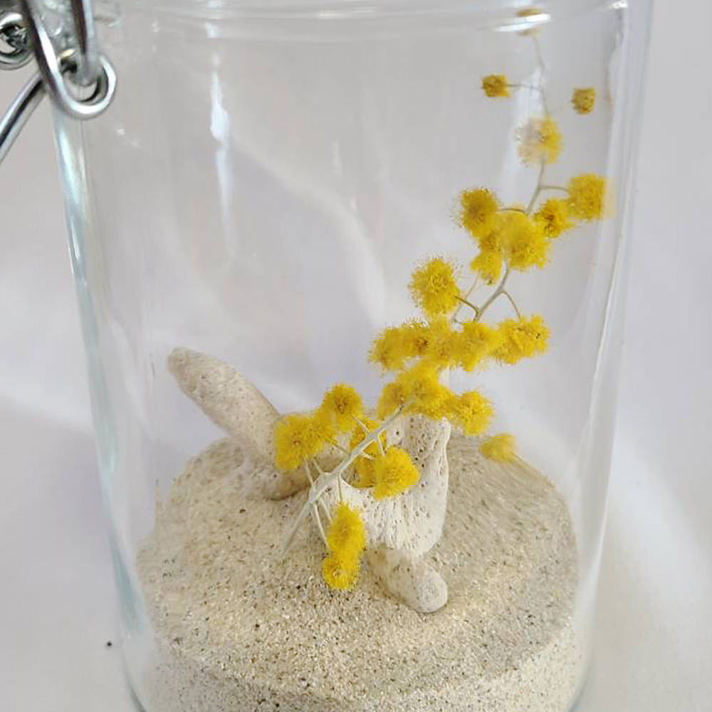 密閉ガラス瓶にミモザのドライフラワー